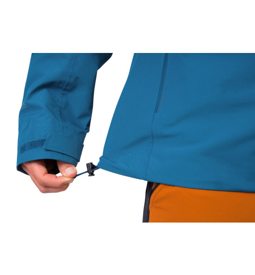 Giacca da uomo con membrana a 3 strati con una colonna d'acqua e una traspirabilità di 10.000. La finitura DWR-C6 è più ecologica e garantisce l'idrorepellenza del materiale esterno. Questa giacca è un'ottima scelta per le escursioni alpine più impegnative e per le spedizioni all'aperto, perché ci si può davvero affidare! È impermeabile, traspirante e antivento grazie alla tecnologia della membrana funzionale non porosa Climatic Element a 3 strati. La maggiore traspirabilità è assicurata dalle cerniere ai pozzetti, mentre le cuciture completamente nastrate e le cerniere impermeabili garantiscono l'impermeabilità complessiva della giacca. Il cappuccio è regolabile in due direzioni semplicemente stringendo gli elastici, così come l'orlo inferiore con regolazione laterale. Le maniche sono preformate, con chiusura in velcro all'estremità. La comoda vestibilità ampia rende questa giacca perfetta per le attività in montagna durante tutto l'anno, sia che si preferisca arrampicare, camminare o anche sciare. È possibile scegliere un secondo strato isolante, ad esempio un piumino più leggero.