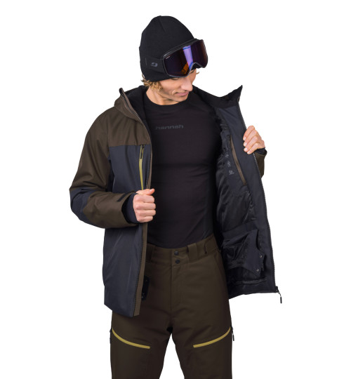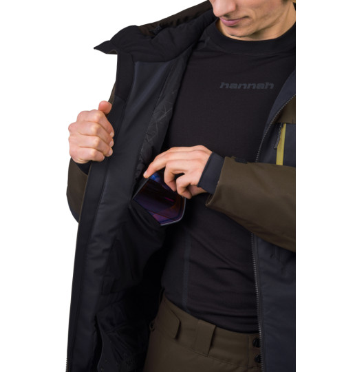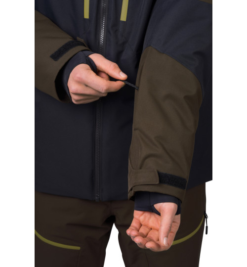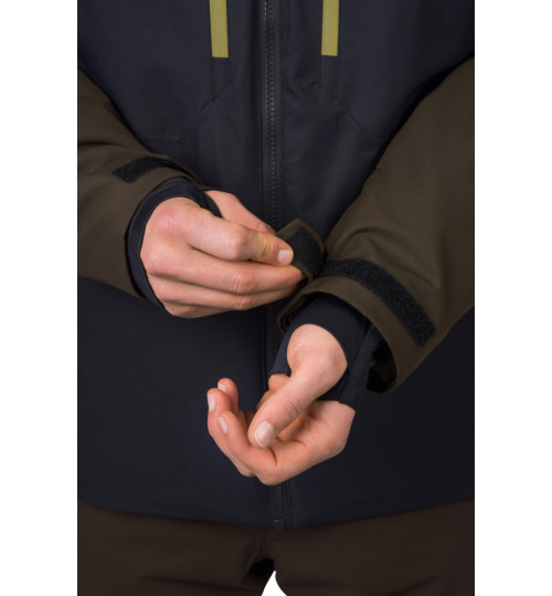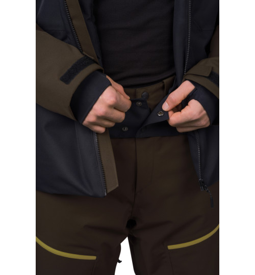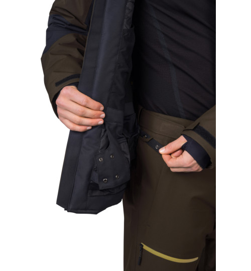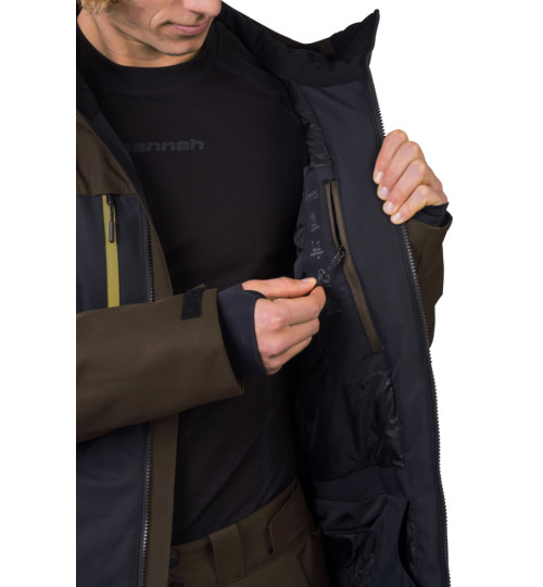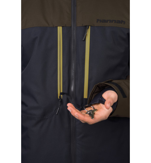 La giacca da sci dal taglio tecnico ha un materiale flessibile trattato con un trattamento idrorepellente superiore. La membrana Climatic Element, con parametri di 10.000 mm di colonna d'acqua e 10.000 di traspirabilità, vi proteggerà in modo affidabile dal bagnarsi mantenendo la traspirabilità. L'isolamento termico è assicurato dal materiale Duratherm Pro, che garantisce comfort e funzionalità ottimali anche quando è bagnato. La giacca è dotata di ottime caratteristiche. Dalle cerniere YKK impermeabili sulla cerniera centrale e sulle tasche sul petto, alla ventilazione sotto le ascelle, al sistema di tasche interne e al colletto da neve in vita. Le maniche anatomiche con una tasca con zip per lo skipass sono rifinite con un orlo a strappo. I polsini elastici interni delle maniche con foro per il pollice riducono la perdita di calore e mantengono la neve al suo posto. Il sistema di connessione tra giacca e pantaloni consente di agganciare facilmente i pantaloni da sci Hannah Wiel.